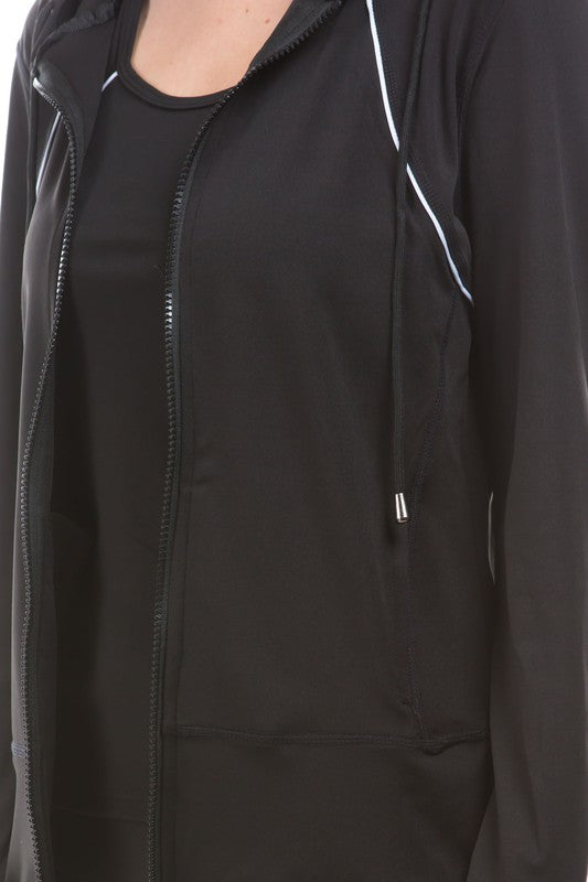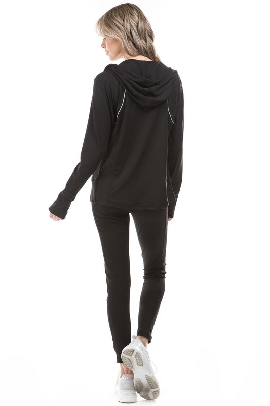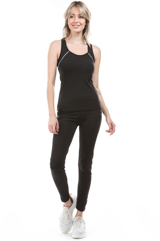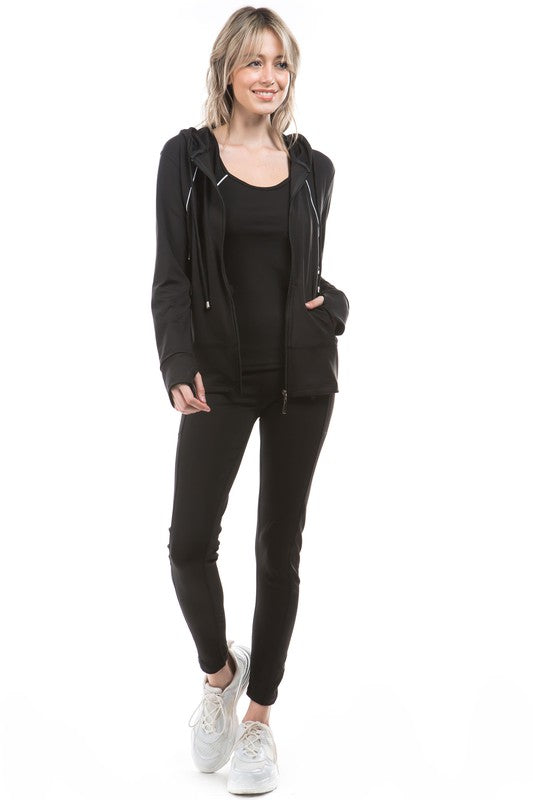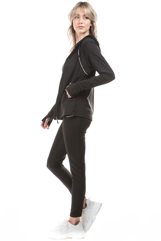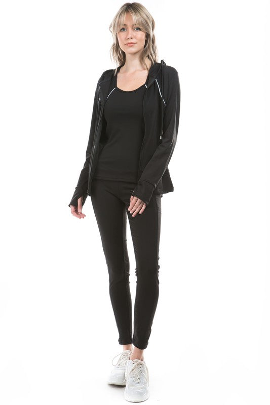 This activewear set features, a tank, a legging and a jacket. Breathable material makes it comfortable and functional. Great for cooler days.