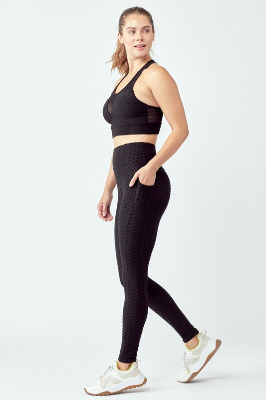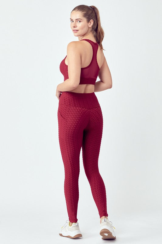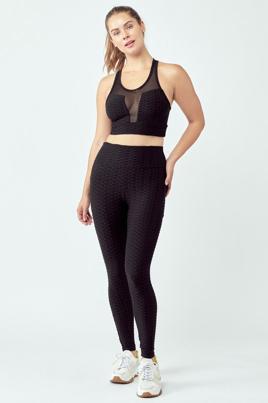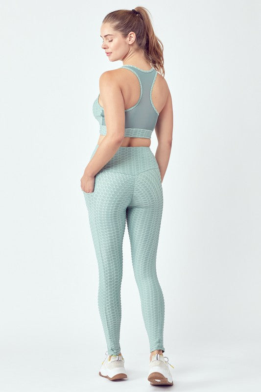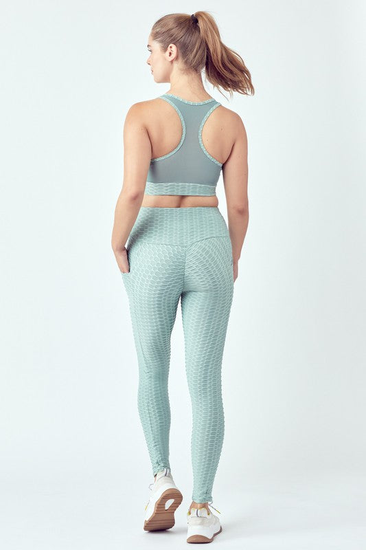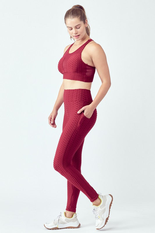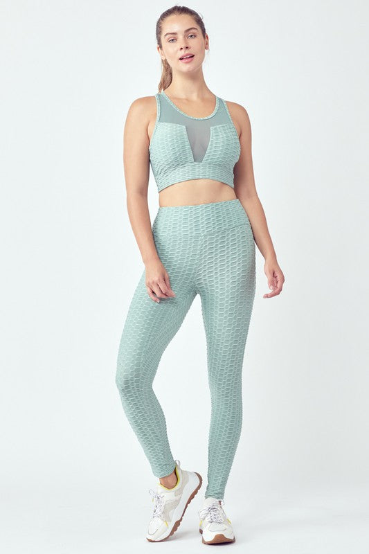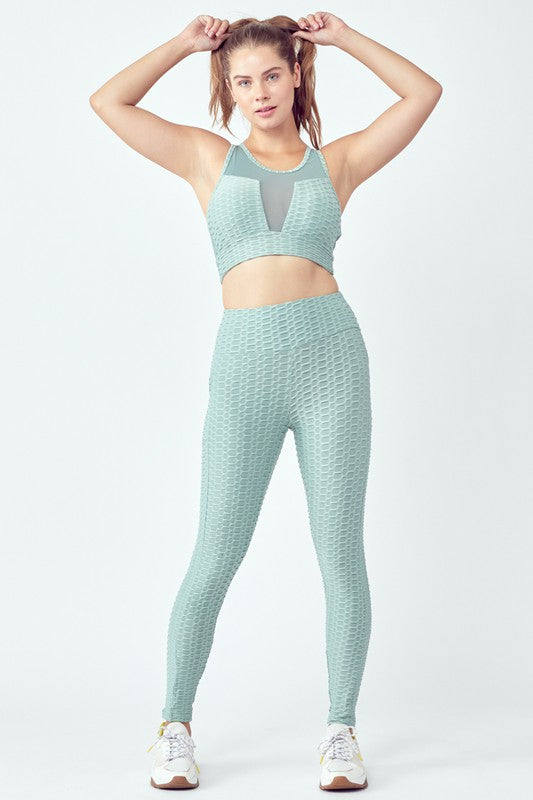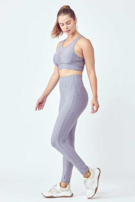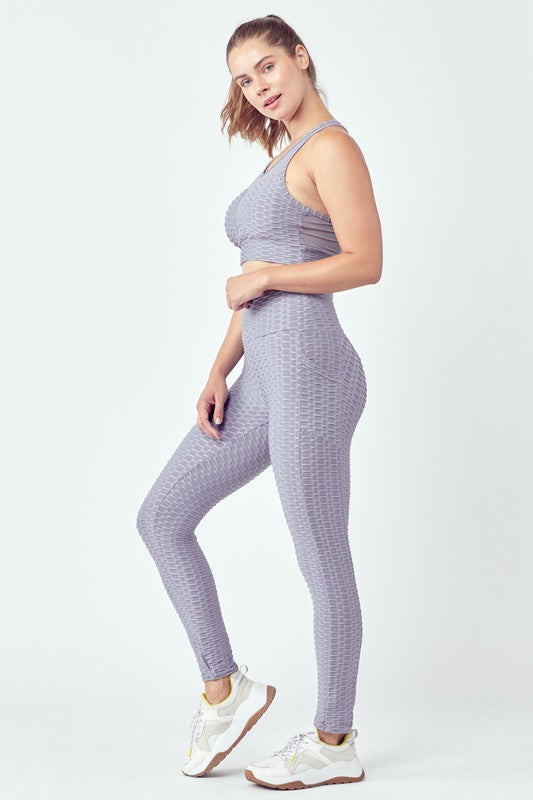 The activewear set uses the latest 3D textured fabrication. It is a trend of 2021. The activewear set is comfortable for yoga, jogging, and other outdoor activities.