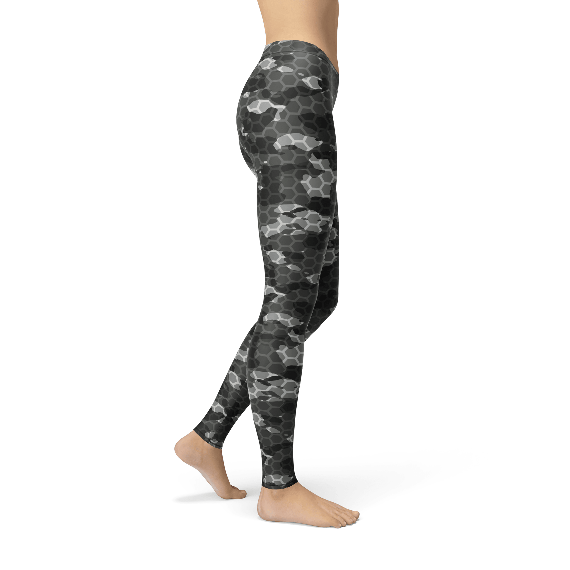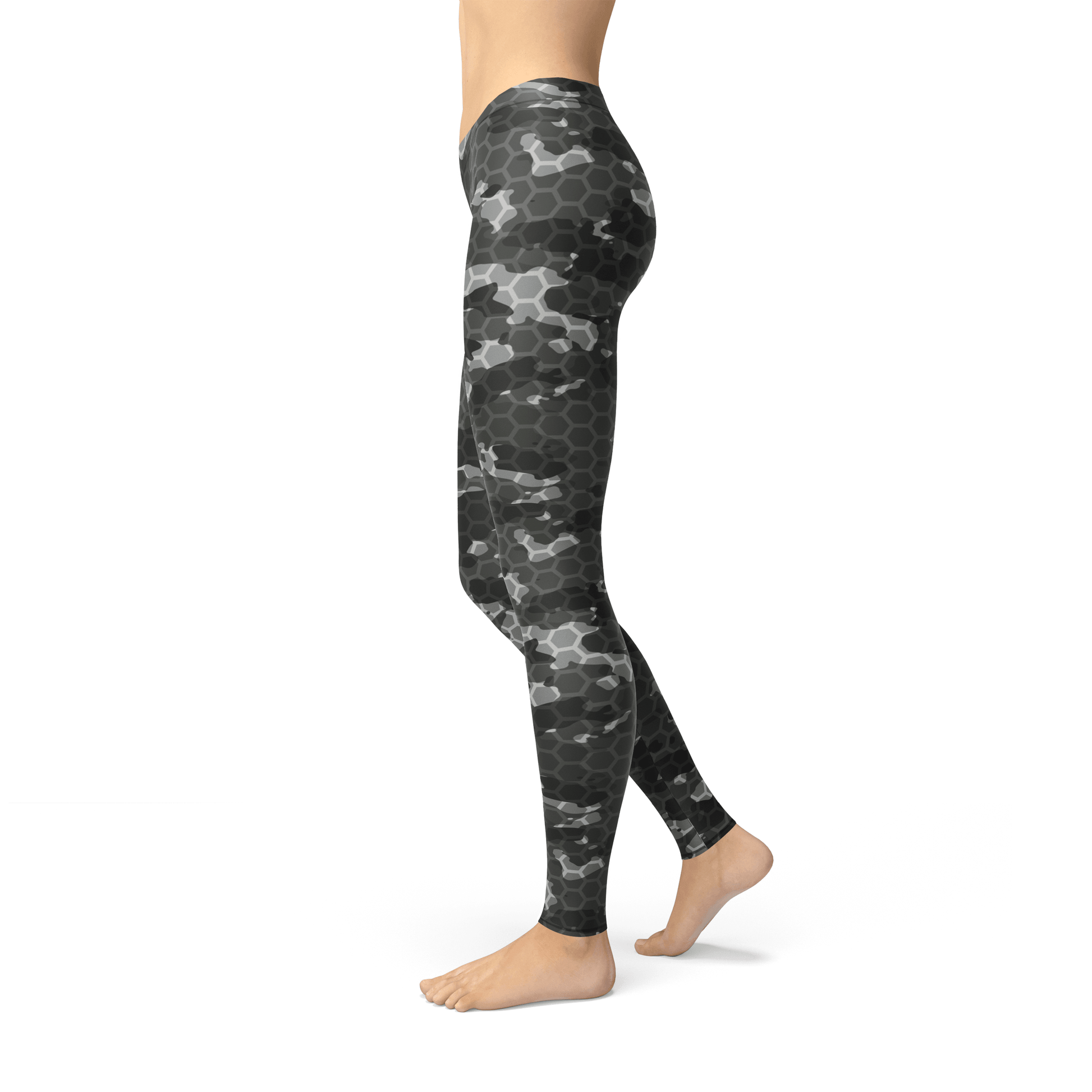 The Avery Black Hex Camo Leggings with 1.5 inch waistband offers a secure and comfortable fit on Soft Lycra fabric. Go ahead Run, Jump, or just relax, these leggings are perfect for any occasion.