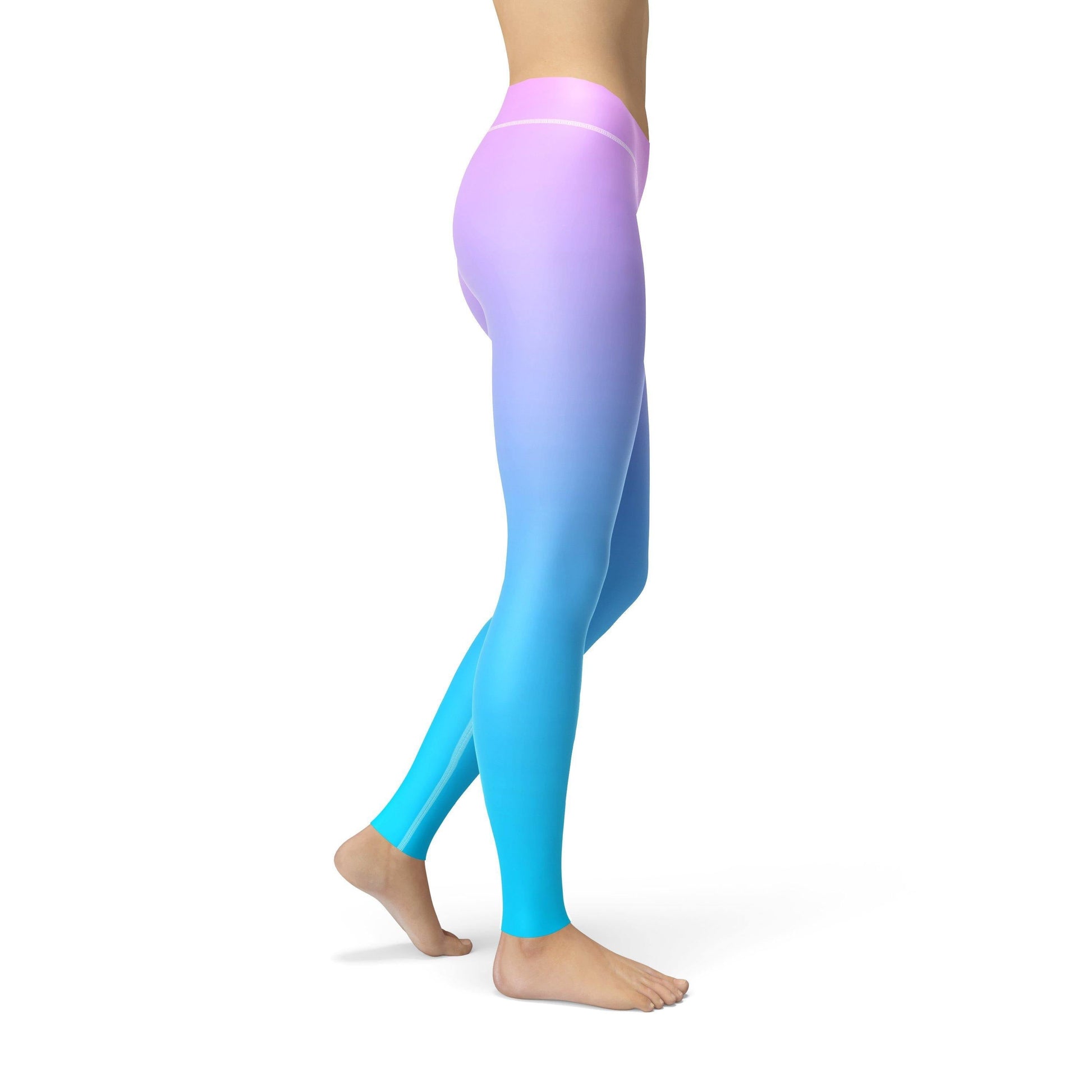 The Avery Pink Blue Ombre Leggings with 1.5 inch waistband offers a secure and comfortable fit on Soft Lycra fabric. Go ahead Run, Jump, or just relax, these leggings are perfect for any occasion.