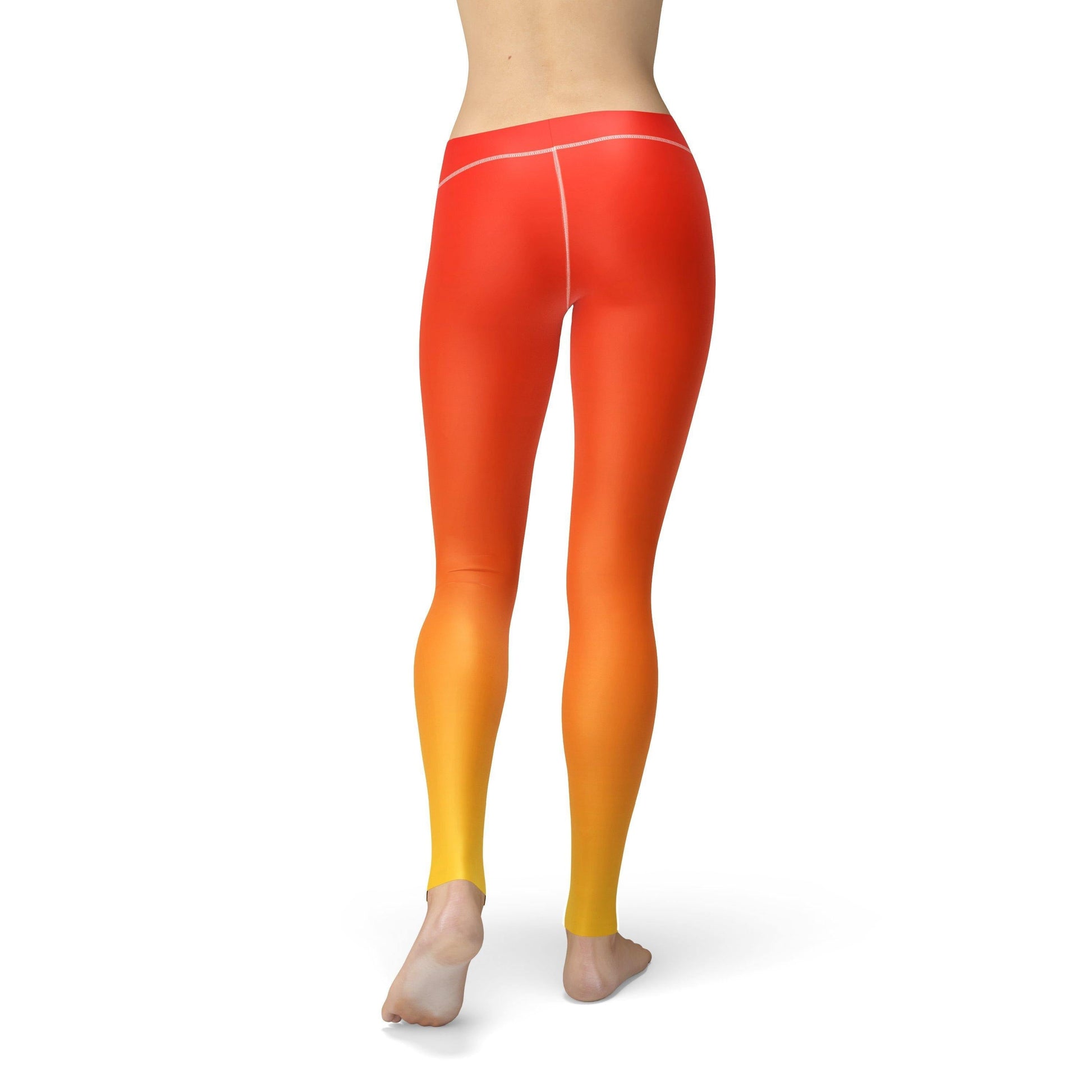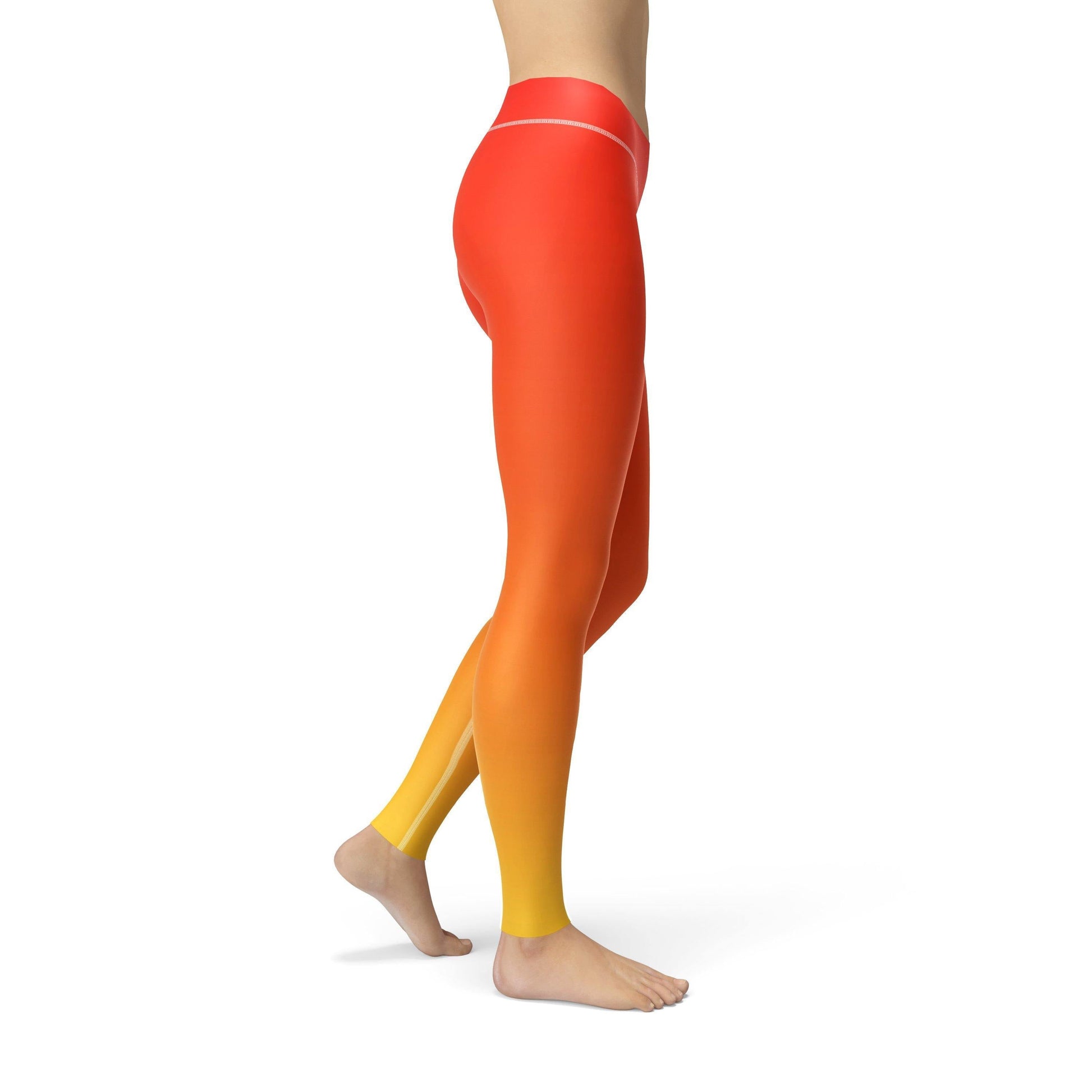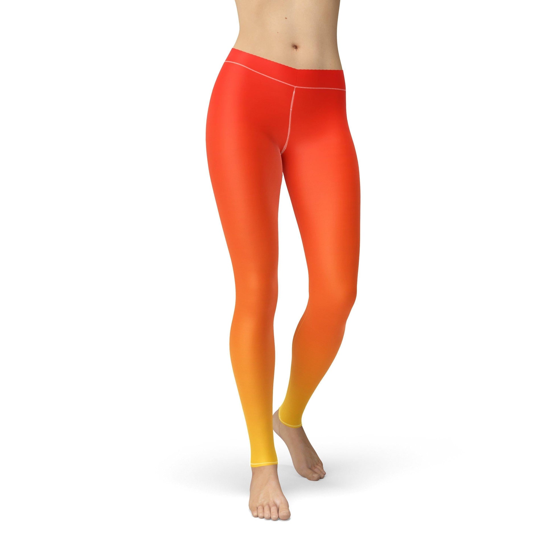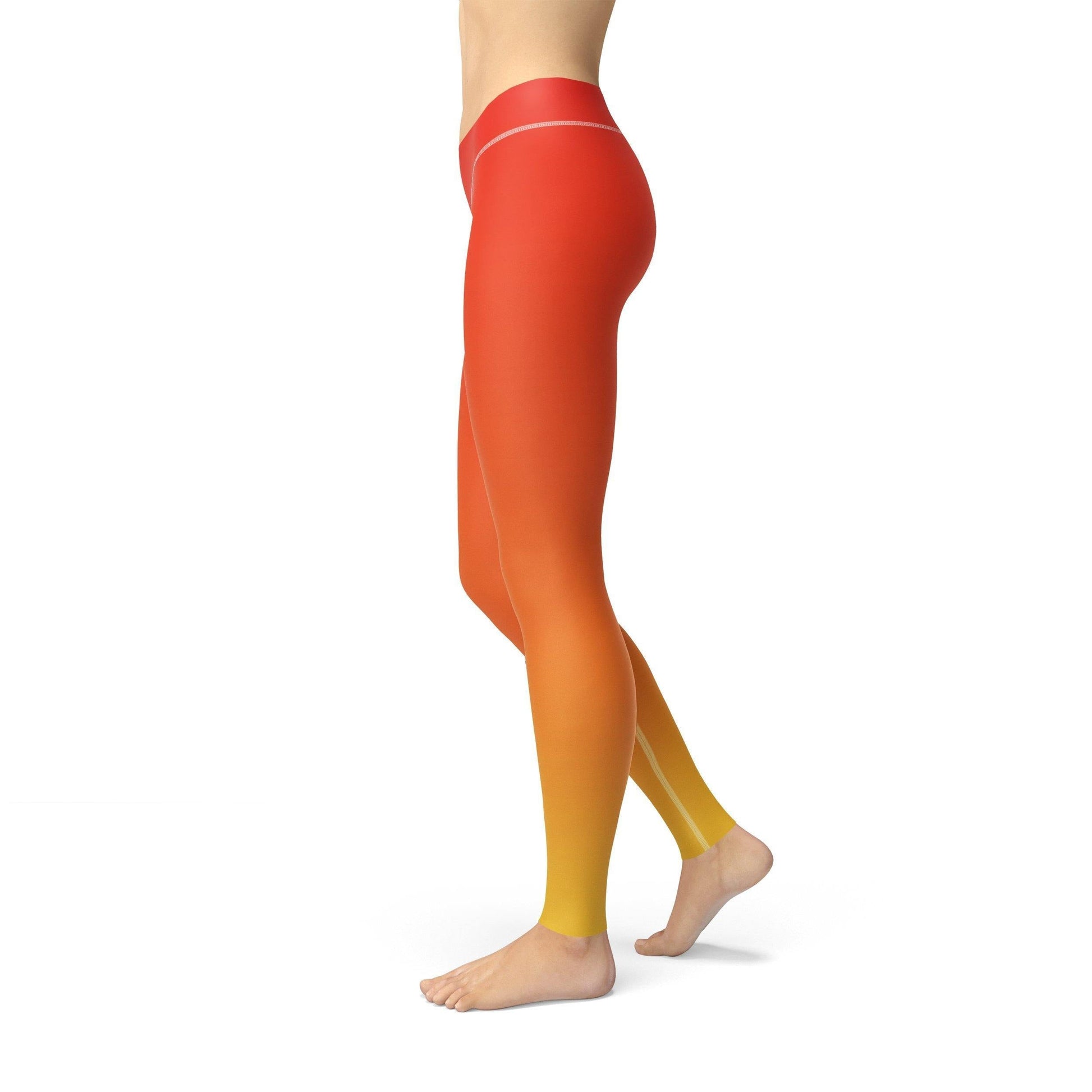 The Avery Red Yellow Ombre Leggings with 1.5 inch waistband offers a secure and comfortable fit on Soft Lycra fabric. Go ahead Run, Jump, or just relax, these leggings are perfect for any occasion.