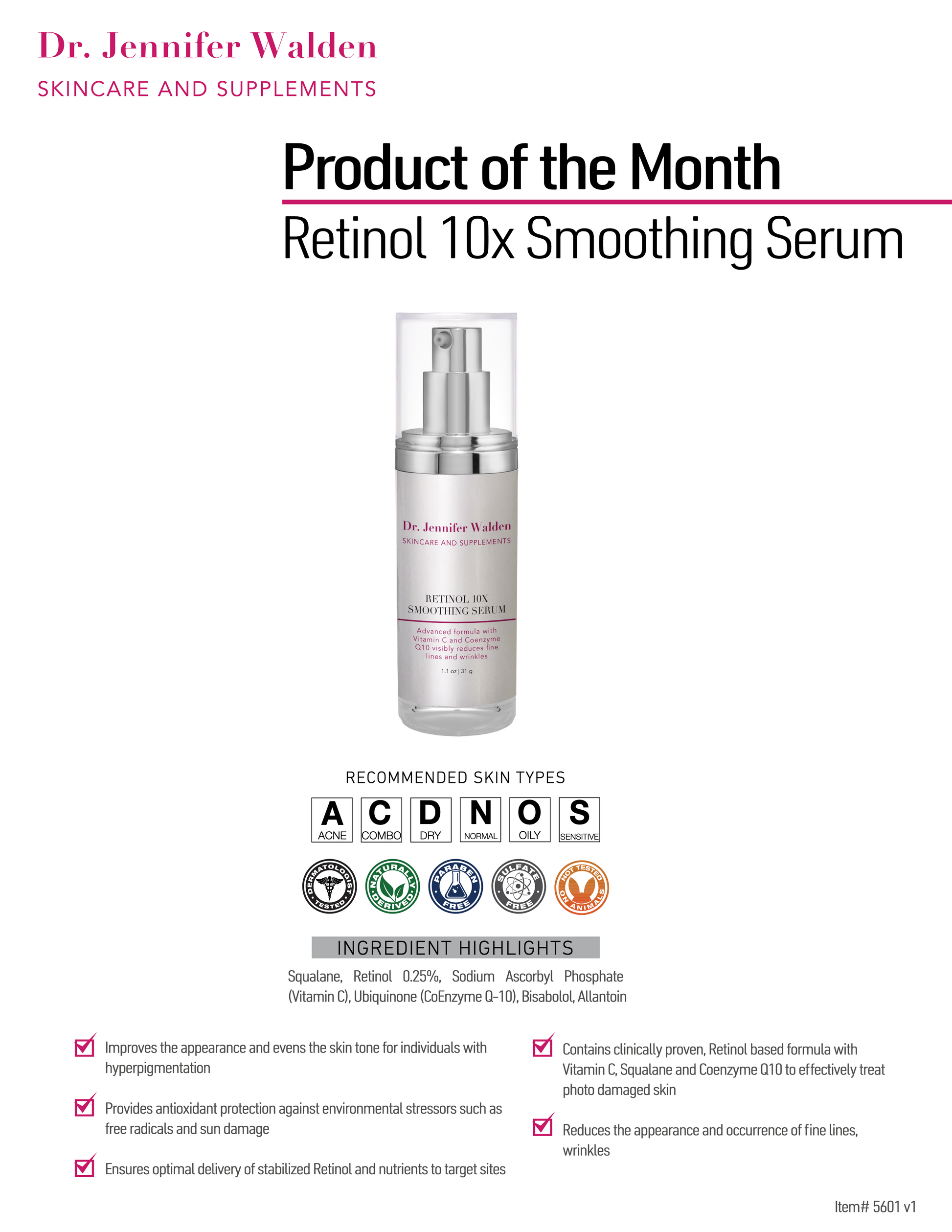 - Advanced clinically proven, Retinol-based formula with Vitamin C, Squalane and Coenzyme Q10 to selectively treat photodamaged skin