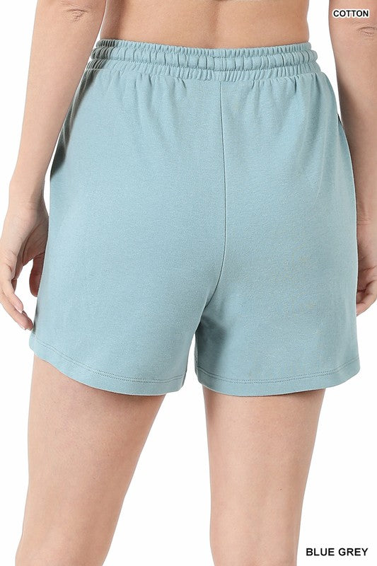 COTTON DRAWSTRING WAIST SHORTS WITH POCKETS