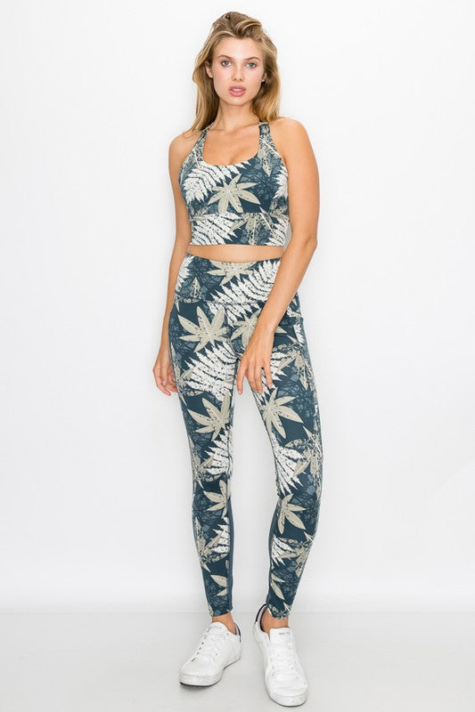 This Crop top activewear set features, a crop top and a matching high waisted leggings. It comes in various patterns. The trendiest style for summer.