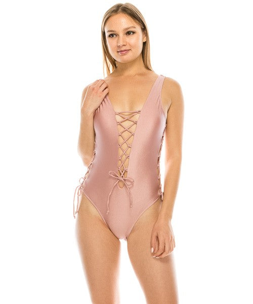 HALTER DEEP V CUT ONE PIECE SWIMSUIT