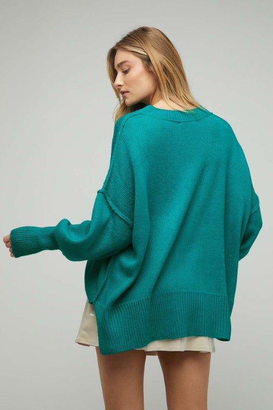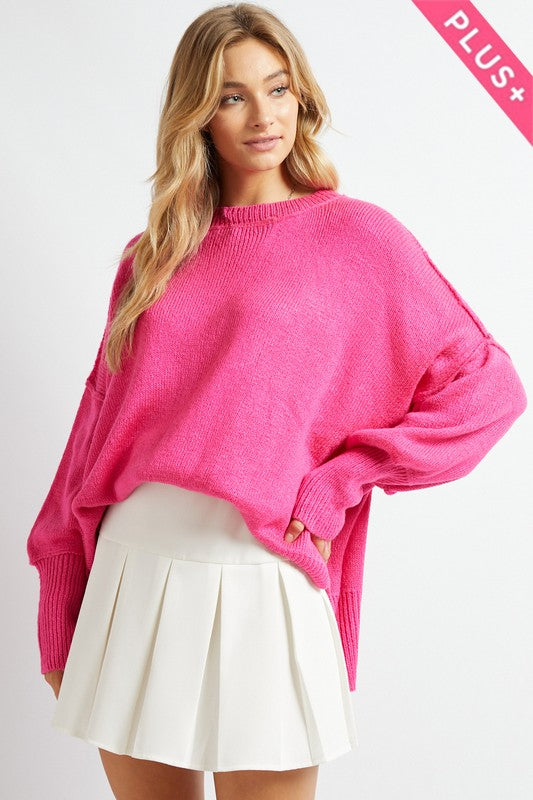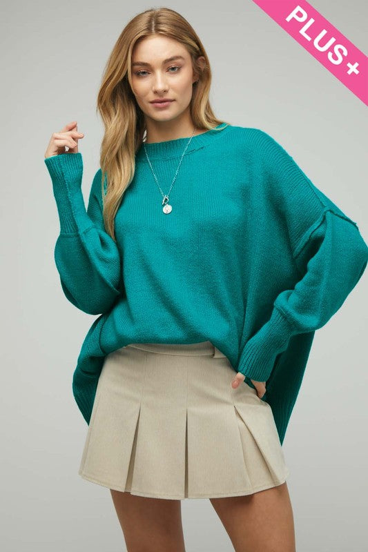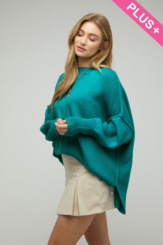 Plus Solid Boat Neck Long Sleeve Sweater