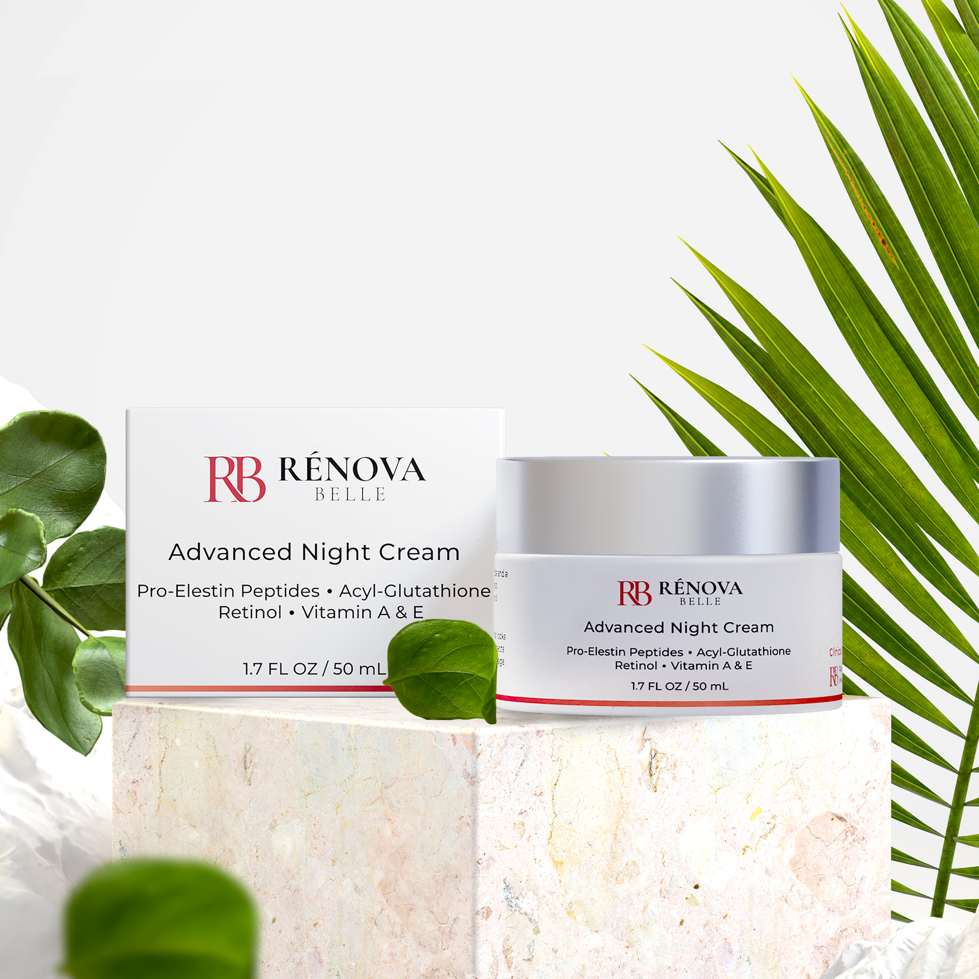"Rénova’s Advanced Night Cream features Pro Elastin Peptides to help you maintain moisturized, soft, and glowing face and neck skin. Additionally, Advanced Night Cream contains Acyl Glutathione, the Mother of all Antioxidants that will visibly reduce the appearance of wrinkles and protect the skin against free radicals." + "