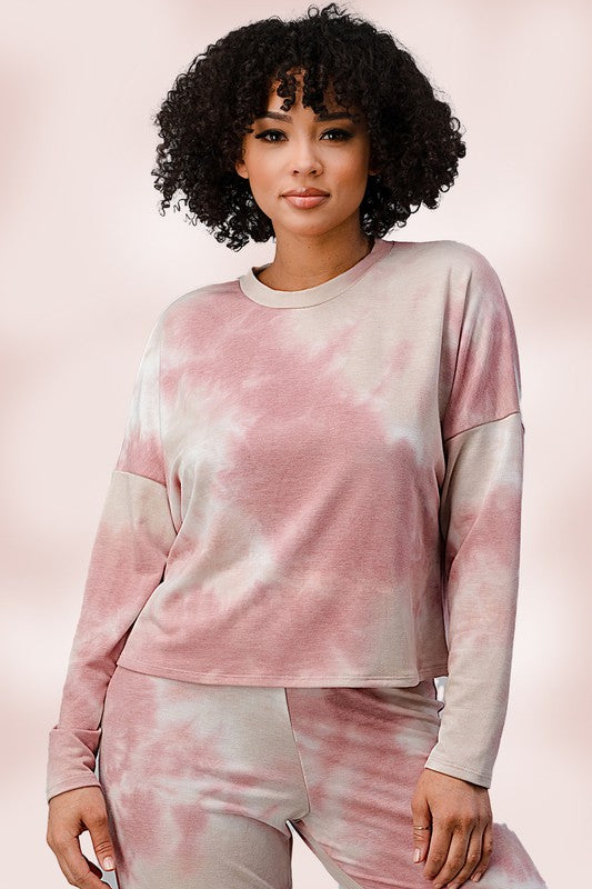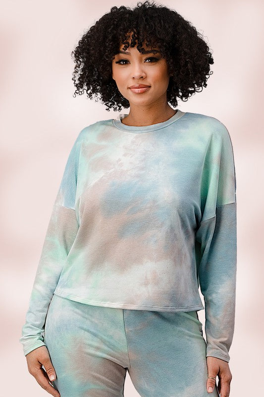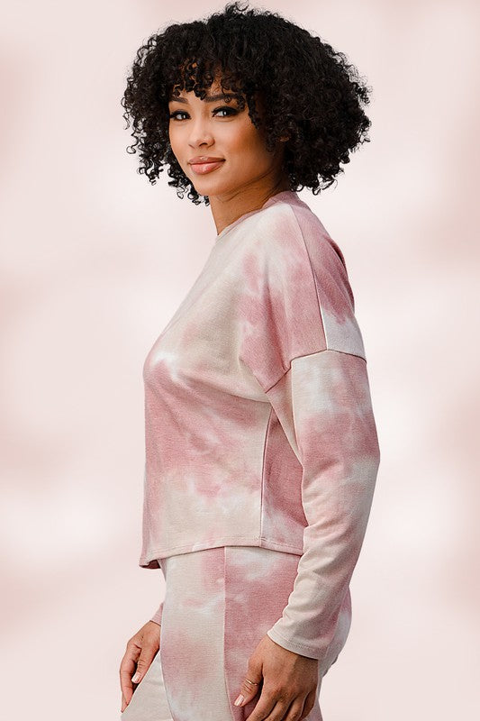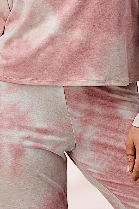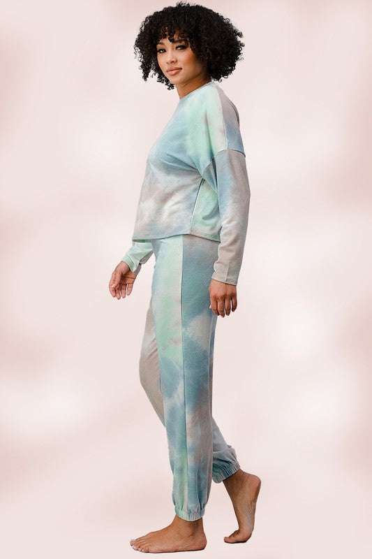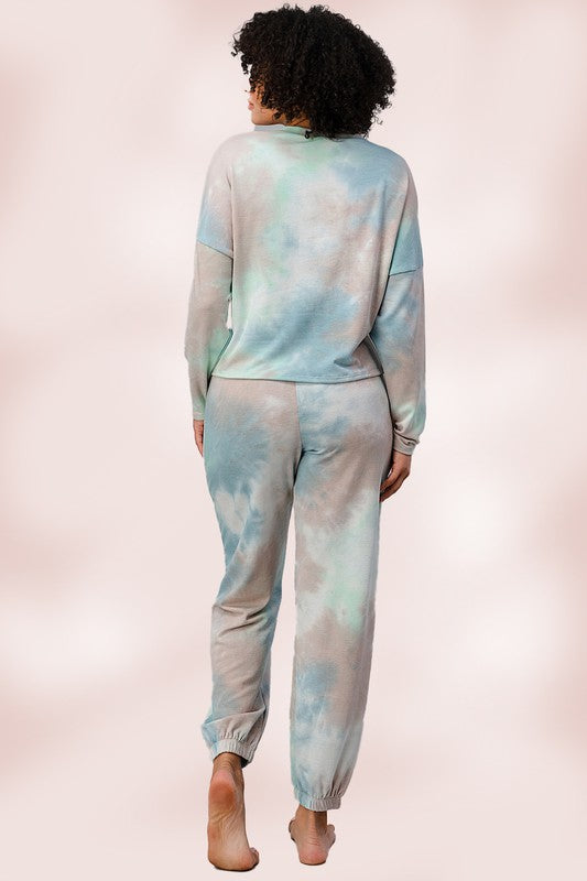 French Terry Tie Dye Sweat Shirts And Jogger Pants Lounge Wear Set